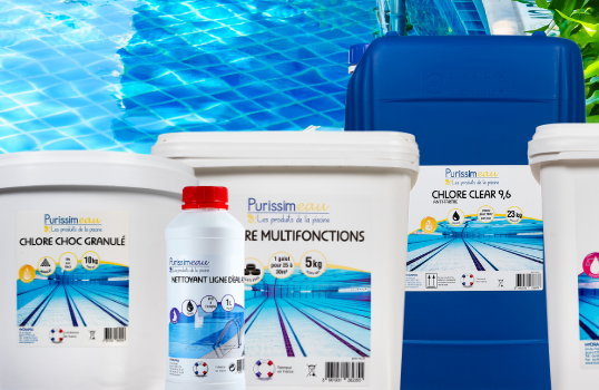 Sel, pH liquide, et un panel complet de produits d'entretien piscine